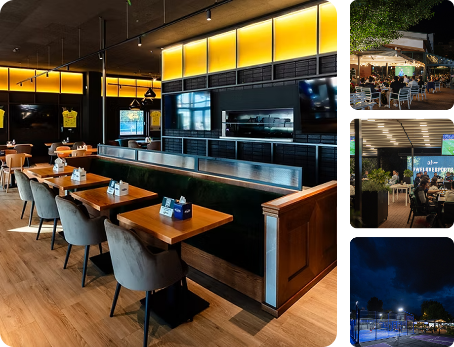 Am creat un meniu divers și bogat, cu opțiuni de mese sănătoase, în acord cu specificul sportiv al clubului, dar nu am neglijat deserturile și cea mai des întâlnită opțiune a clienților, pizza, o specialitate a casei.